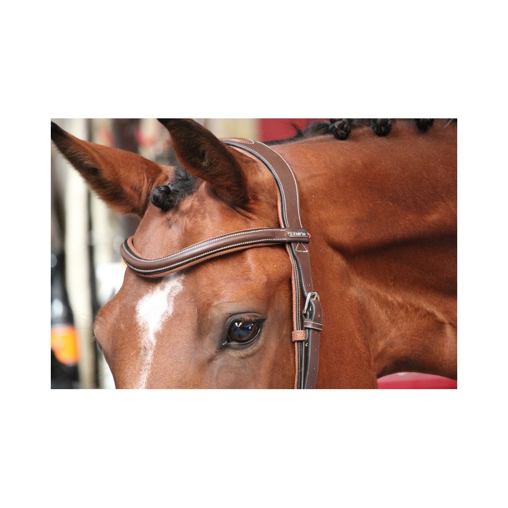 Le bridon New York est un produit issu du savoir faire Jump’In, le design a été pensé pour dégager le cheval de tous les potentiels points de pressions et frictions créés pendant le travail. Têtière anatomique, attache de muserolle décalée, pas de superpositions de montants et une doublure très confortable en cuir micro-perforé sont les atouts du modèle New York.