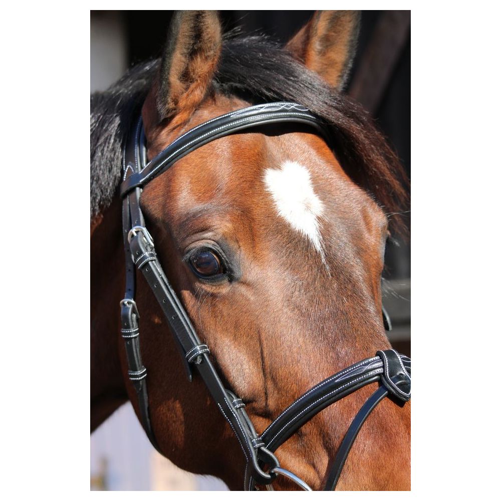 Issu de la Collection One, le bridon Paris est un produit essentiel, un basique intemporel. Le frontal et la muserolle sont fabriqués dans un cuir bombé et sont rehaussés d’un fancy en contraste crème. Un noseband est rattaché à la muserolle. La têtière est légèrement anatomique pour apporter plus de confort au cheval.