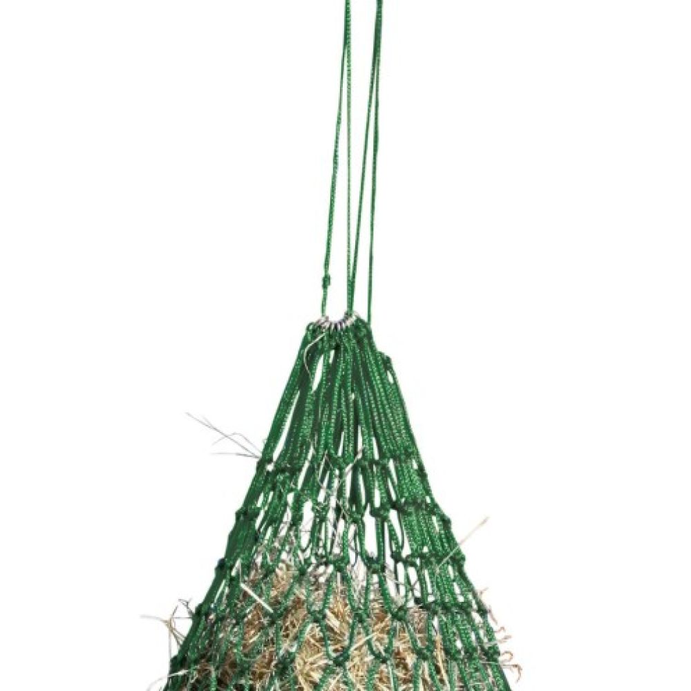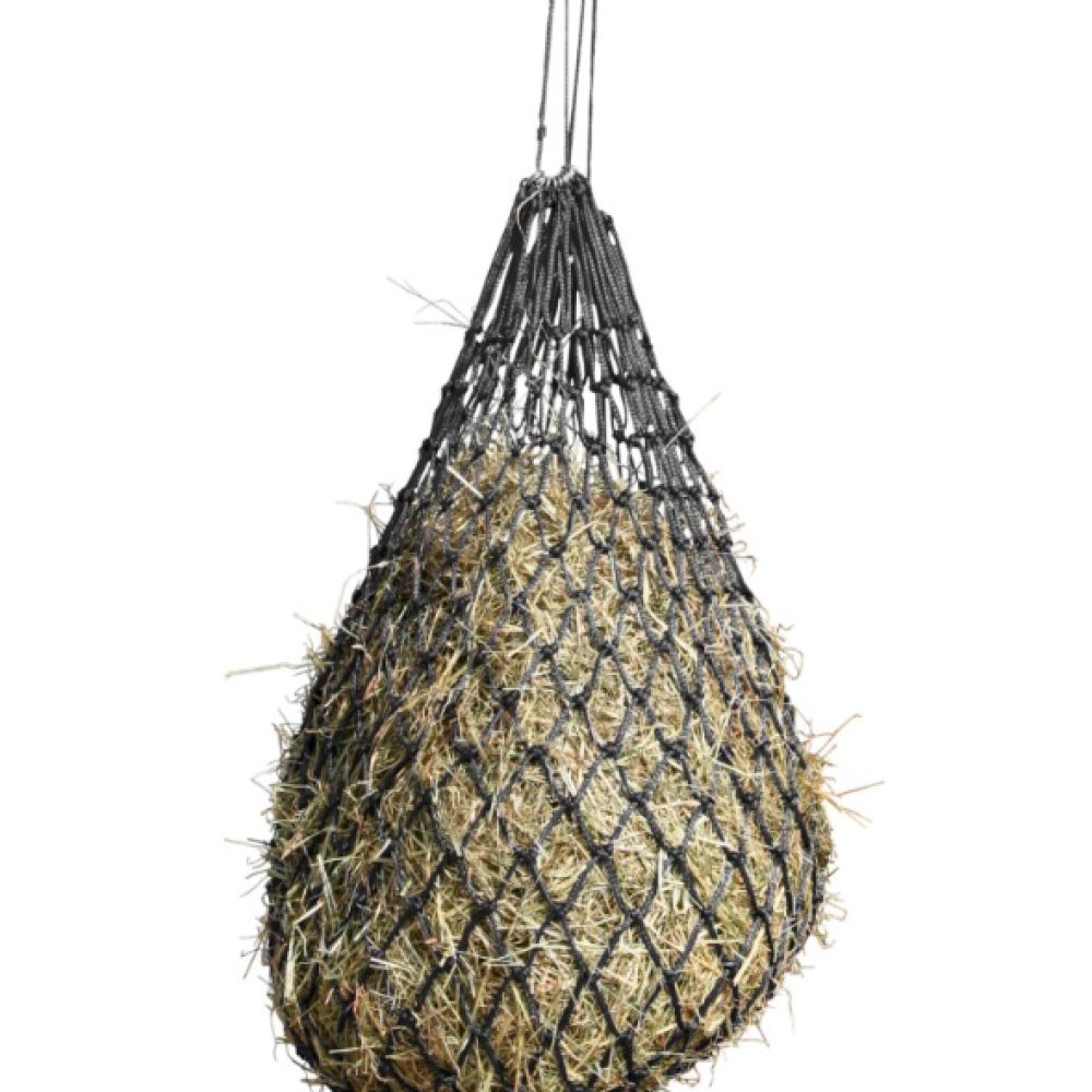 Filet à foin Covalliero à mailles 5×5 cm. Ralentit l’ingestion, réduit le gaspillage et prolonge le temps d’alimentation.
